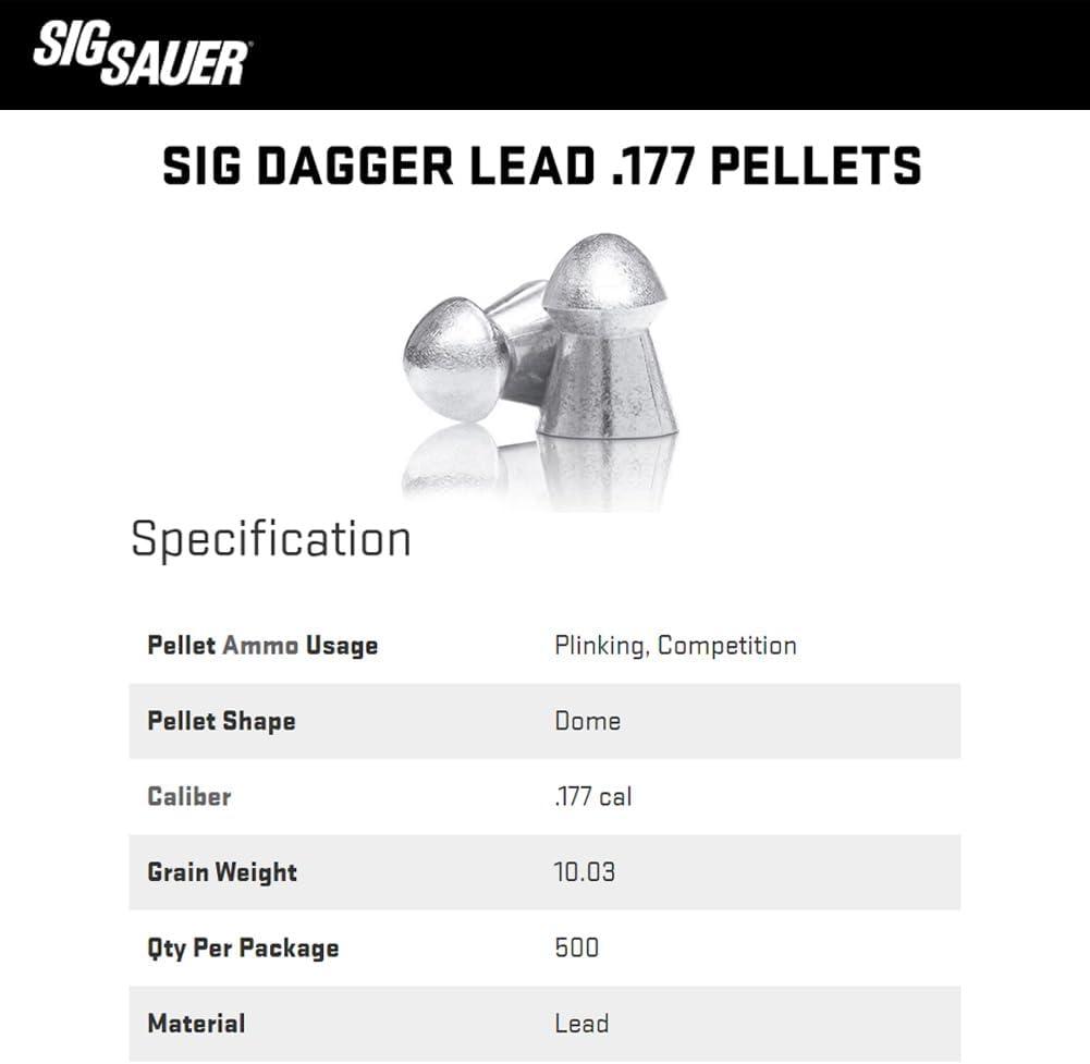 INCREASED ACCURACY – SIG SAUER has developed powerful and high-precision lead ammunition designed to excel at the standards of airguns and air rifles; The Dagger .177 Pellets allow you to increase accuracy and performance and improve your shooting skills