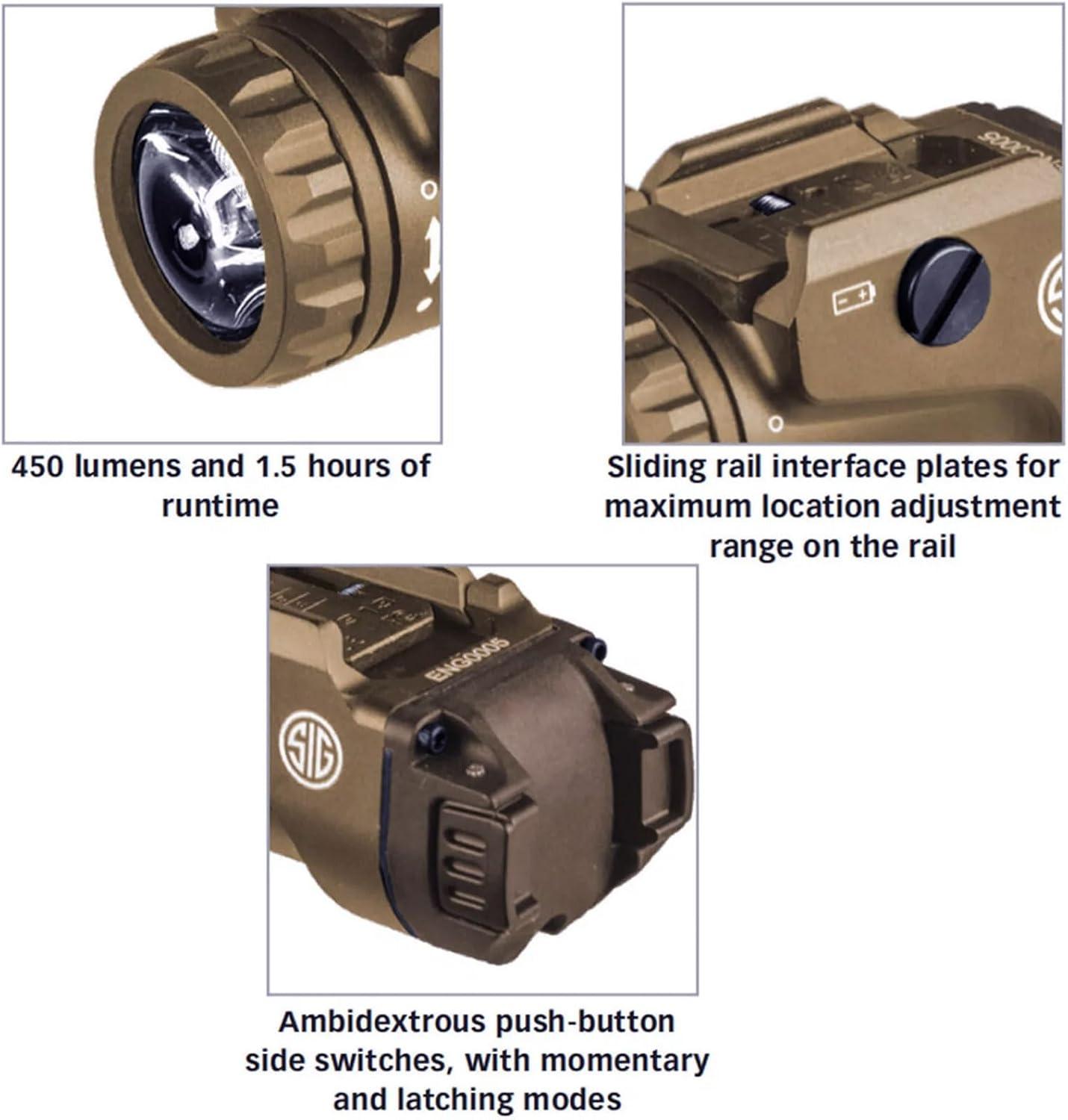 POWERFUL ILLUMINATION -The Sig Sauer Foxtrot1X Flashlight boasts an impressive 450 lumens, providing a potent and bright illumination source; With a runtime of over 1.5 hours, this flashlight ensures reliable performance in various situations; It also features a lockout mode to prevent accidental light activation