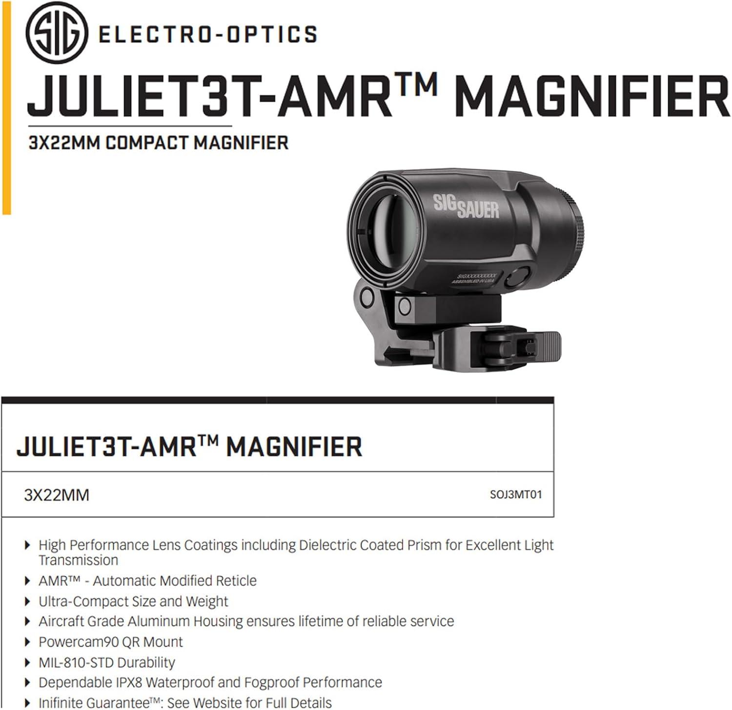 ENHANCE TARGET CLARITY WITH 3X MAGNIFICATION – The SIG SAUER JULIET3T-AMR delivers 3x magnification to extend your effective range and improve precision; Ideal for pairing with red dot sights, this compact magnifier improves target recognition and accuracy in mid-range shooting applications