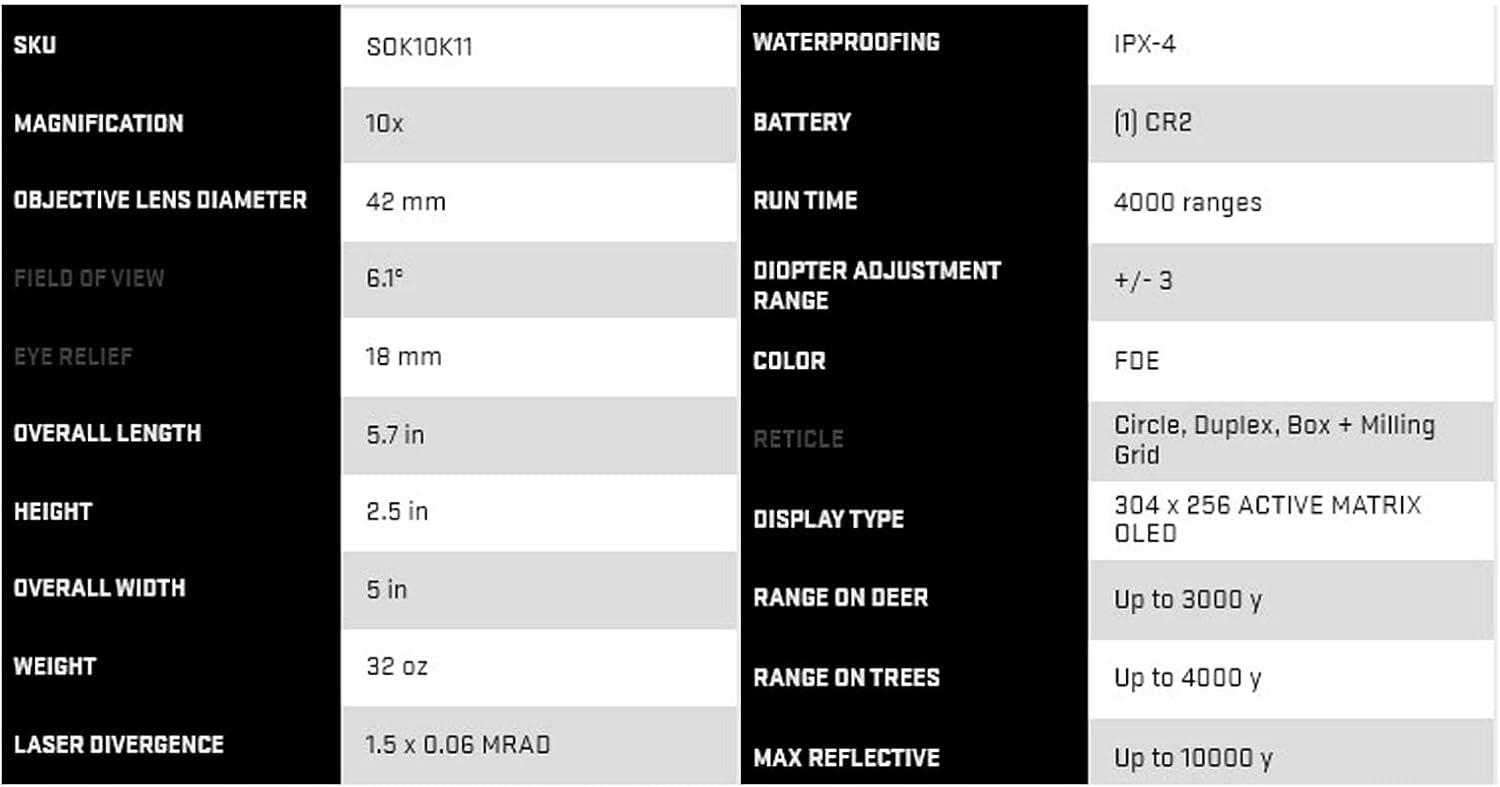 BDX 2.0 ENABLED WITH LONG RANGE BLUETOOTH – The KILO10K also supports BDX External (BDX-X) for connecting to external devices such as Kestrel and Garmin devices; the Gen II LightWave DSP engine features target modes: Extended Range (XR) and Fog mode