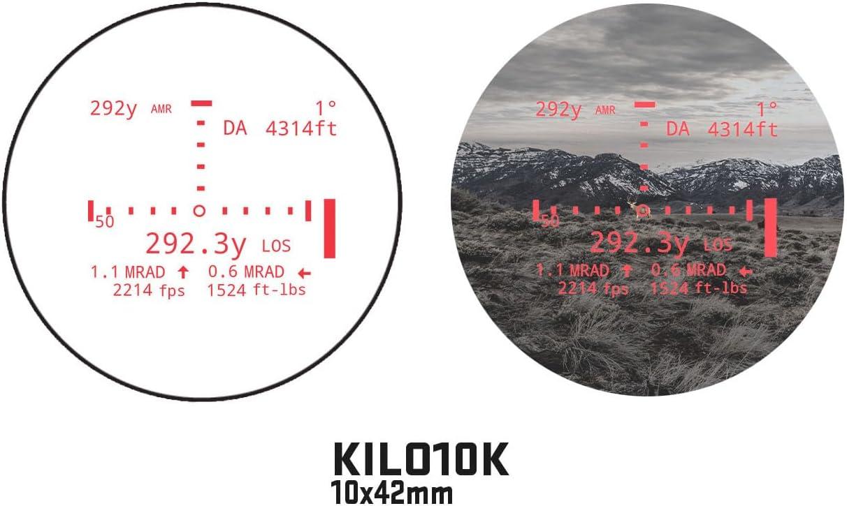 BINOCULAR RANGEFINDER – The KILO10K-ABS HD 10 x 42 mm laser range finding binocular with BDX 2.0 has a maximum reflective range of 10,000 yards and includes Applied Ballistics Elite (BDX Elite) onboard along with environmental sensors and digital compass