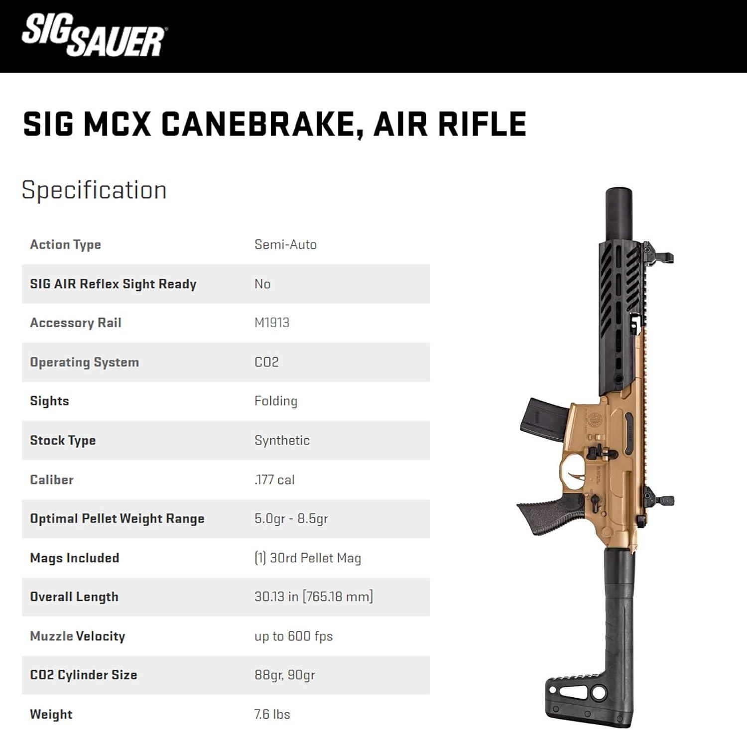 HIGH PERFORMANCE – The SIG MCX Canebrake is a semi-automatic air rifle with a 90g CO2 power source (not included); It comes with a metal receiver, paired to a synthetic handguard with an integrated M-LOK modular locking accessory mounting system