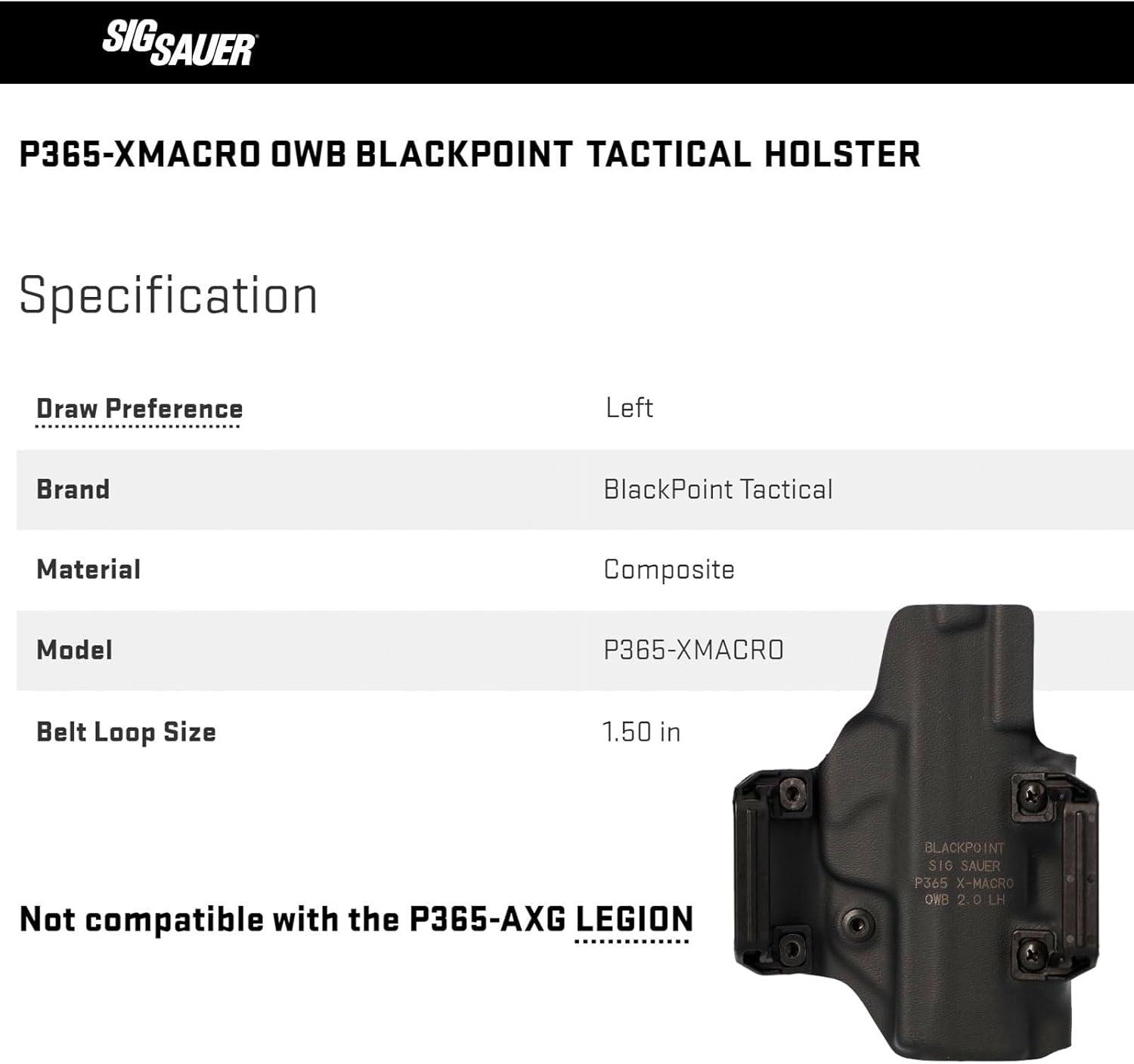 SIG SAUER P365 X-Macro OWB BlackPoint Tactical Right/Left Hand Lightweight Durable Weather-Resistant Adjustable Concealed Carry Hip Handgun Holster(Left)