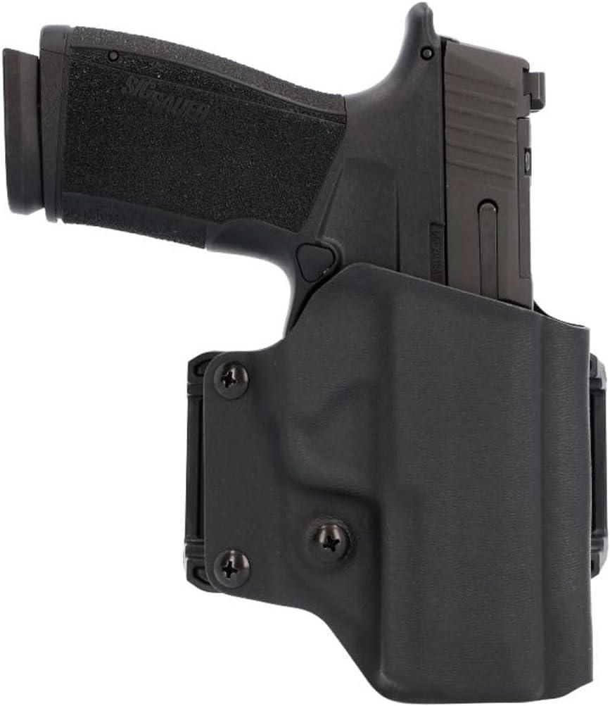 ADJUSTABLE DESIGN – This right-hand outside the waistband pistol holster from SIG SAUER features a tensioning screw below the trigger guard so the shooter may adjust the pistol retention tension as they see fit