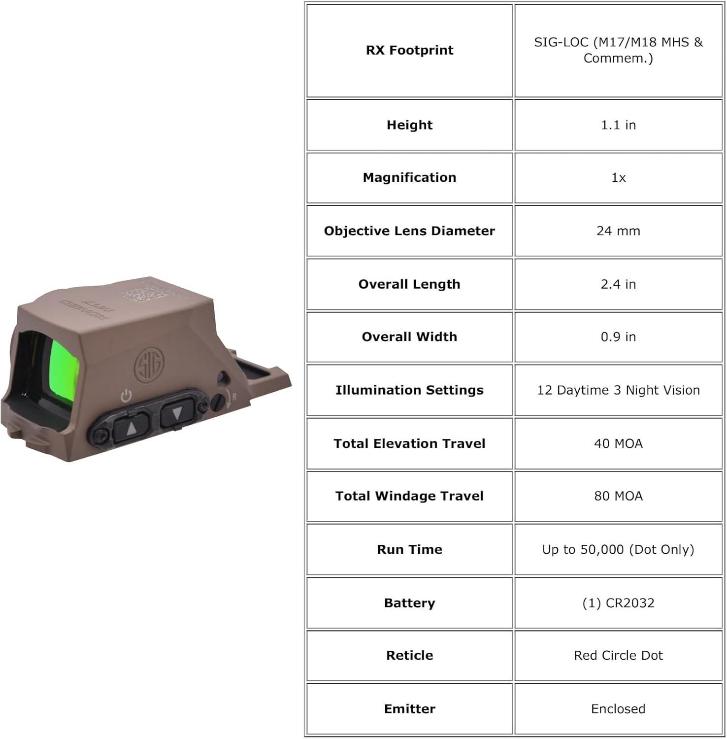 Sig Sauer ROMEO-M17 1x24mm Reflex Red Dot Sight - 15 Brightness Settings, 50,000 Hours Runtime, Magnetic Activation, Motion Activated Illumination(Coyote)