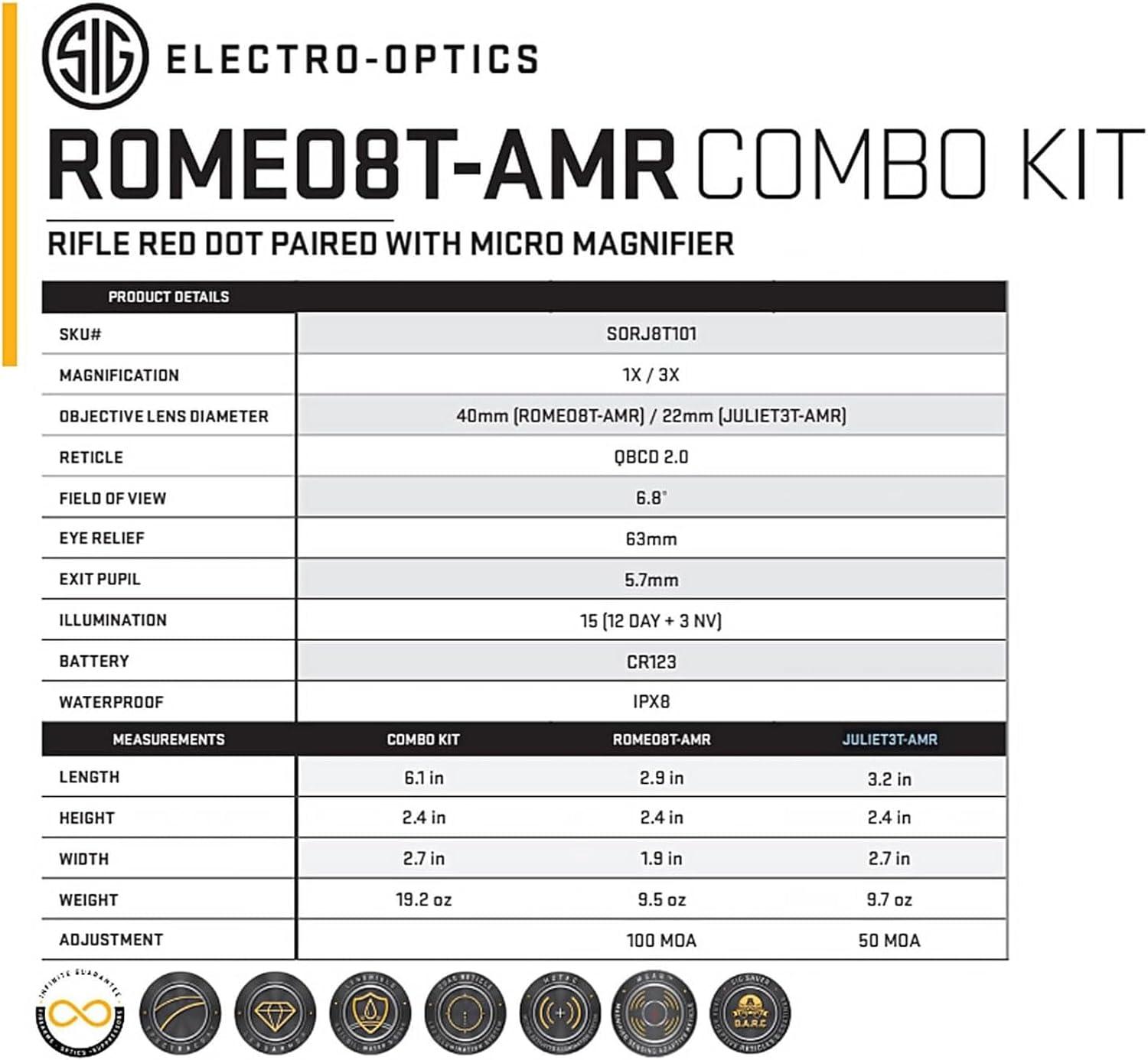 SIG SAUER ROMEO8T-AMR 1x40mm Red Dot Sight & JULIET3T-MICRO 3x22mm Magnifier Combo | Waterproof Electro-Optics Kit with QBCD 2.0 Reticle & MOTAC | Durable Compact Sight Set for Tactical Use