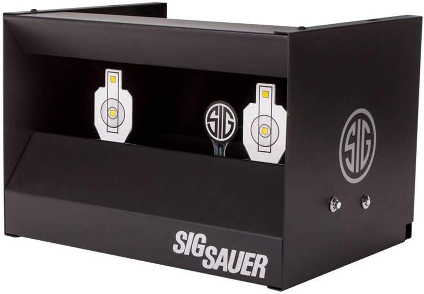 The all-metal pellet trap system has 4 center mass knockdown targets with a center SIG target for the reset function. Includes 5 sets of replacement target stickers.