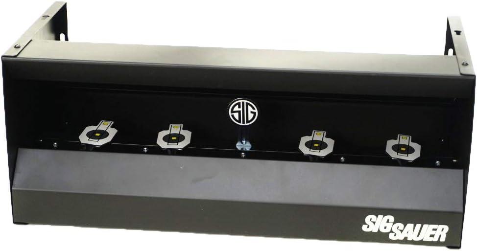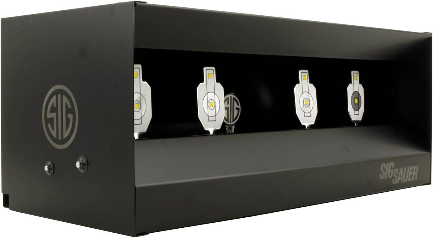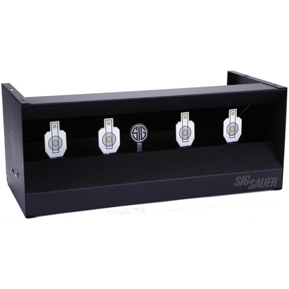 The all-metal pellet trap system has 4 center mass knockdown targets with a center SIG target for the reset function. Includes 5 sets of replacement target stickers.