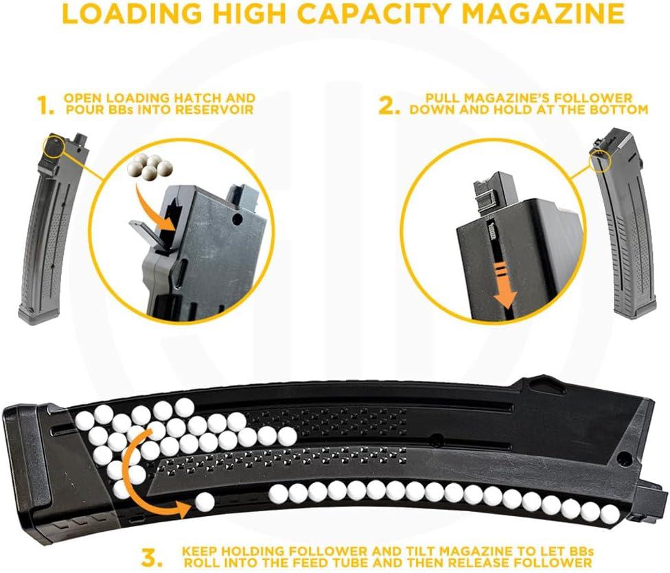 26-ROUND DROP FREE MAGAZINE WITH A 500-ROUND RESERVOIR – The rifle comes with a 26-round drop free magazine that includes a 500-round reservoir, which gives plenty of shooting time without worrying about reloading, and the pistol has a 12-round magazine