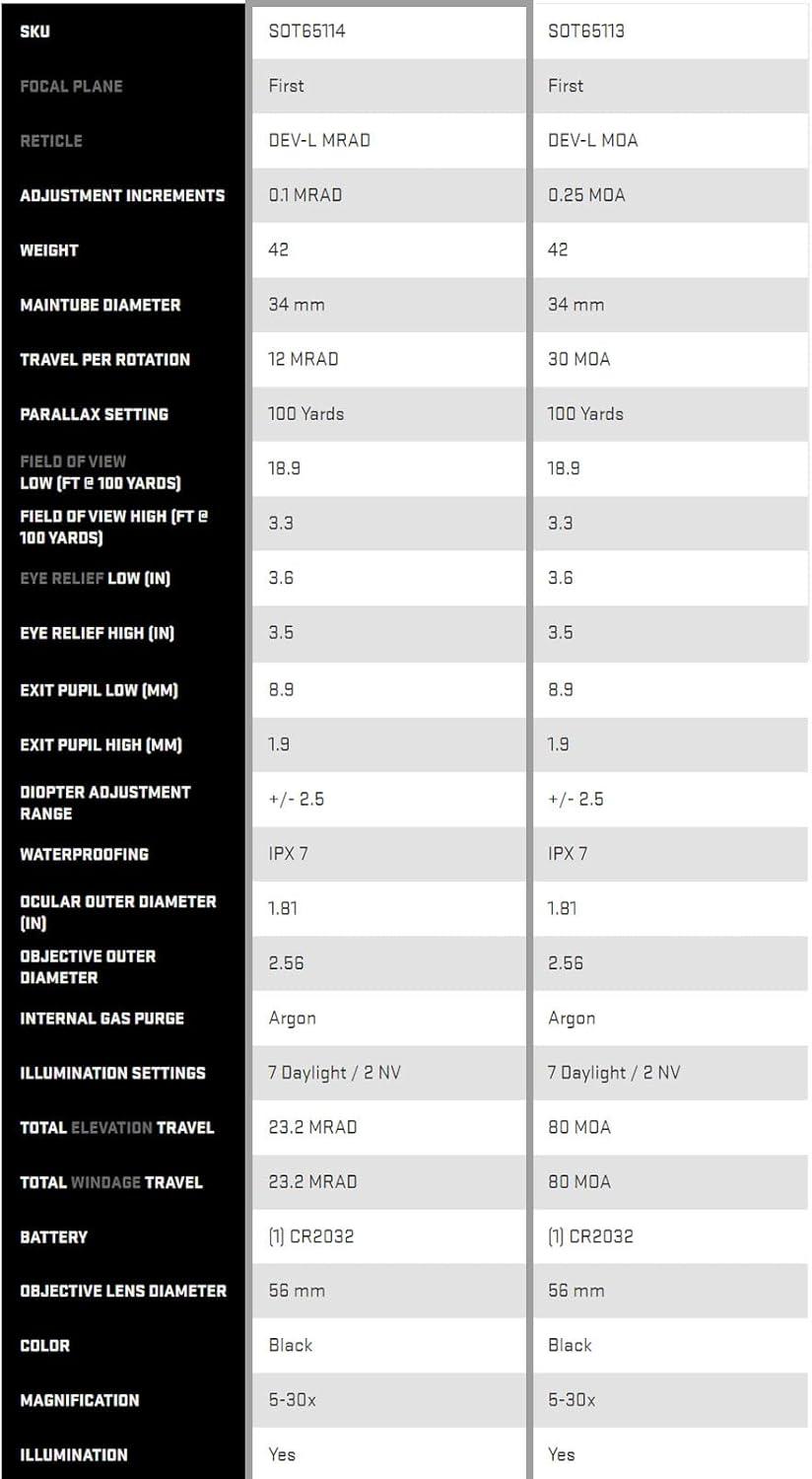 – HDX optics extra-low dispersion glass(LD) combined with high transmittance glass(HT) provide industry-leading light transmission and optical clarity for any situation; – LevelPlex Digital Anti-Cant System utilizes an integrated digital level with user-selectable reticle cant detection at +/-0.5 degree or +/-1.0 degree sensitivity; – Motion Activated Illumination powers up when it senses motion and powers down when it does not; – Dependable (IPX-7 rated for complete immersion up to 1 meter) waterproof and fog-proof performance; – T120 Tactical Turrets with 120 clicks per rotation (12 MRAD or 30 MOA); – LockDown Zero System on the TANGO6 features a resettable zero, and zero-stop and is lockable at any location – Other included technologies: Hellfire Reticle, LensArmor, LenShield, SBT, SpectraCoat, Stealth ID.