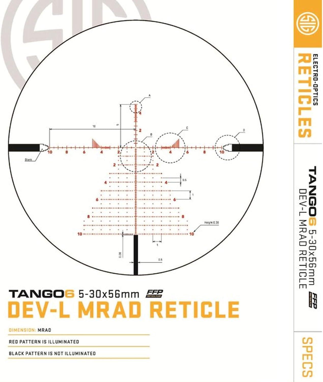 SIG SAUER TANGO6 5-30X56 MM FIRST FOCAL PLANE ILLUMINATED RETICLE RIFLESCOPE: